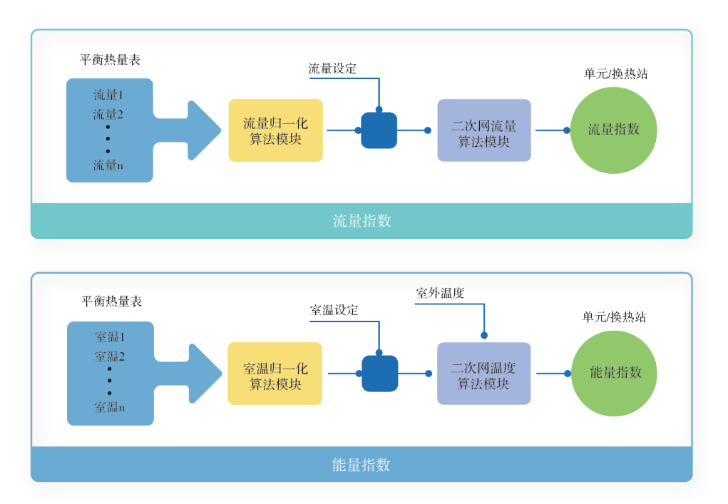 傳統(tǒng)的供熱系統(tǒng)是以“能源生產(chǎn)為導向”,熱源側保持供應總量,用戶側分攤的“推動式”供熱。新型“源-網(wǎng)-站-戶”全域協(xié)同的供熱模式是以“負荷需求為導向”,根據(jù)實際需求生產(chǎn)的熱量的“拉動式”供熱。利用新一代信息化技術,將水力平衡和熱力平衡的調(diào)控需求歸一為各個層級的標準流量指數(shù)和能量指數(shù),按“戶內(nèi)-熱用戶-單元-換熱站-熱源”的順序逐級依次向上傳遞,能量逐級向下精準配送,進而實現(xiàn)包括“熱電協(xié)同”在內(nèi)的“源-網(wǎng)-站-戶”全域協(xié)同。